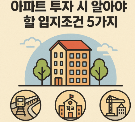 아파트 투자는 많은 사람들에게 가장 현실적인 자산 증식 수단입니다. 특히 대한민국에서 부동산은 단순한 ‘집’ 이상의 의미를 갖습니다. 하지만 모든 아파트가 투자 가치가 있는 것은 아닙니다. 그 가치를 결정짓는 가장 핵심 요소는 바로 ‘입지(location)’입니다. 아무리 잘 지어진 아파트라도 입지가 나쁘면 시세 상승은 물론, 거래도 쉽지 않습니다. 이 글에서는 아파트 투자 시 반드시 체크해야 할 5가지 입지조건을 쉽고 실용적으로 알려드리겠습니다.